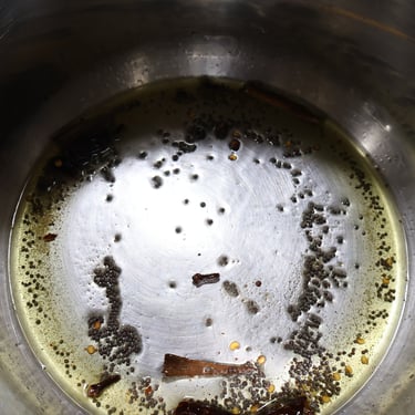 Turn on the Instant Pot to Saute on the higher heat setting and add the oil and ghee. Once they heat up, test the oil with a couple of poppy seeds. When they pop, the oil is ready.